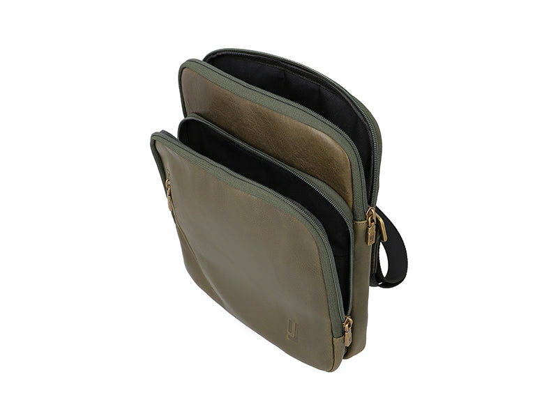 حقيبة الكتف العصرية هذه رفيعة وأنيقة، مثالية للطلاب والمحترفين. يضفي اللمسة النهائية من الجلد الطبيعي والحزام القابل للتعديل مظهرًا ريفيًا أكثر كاجوال من الشركات، كما يتميز تصميمه المريح بعدة جيوب سهلة للحفاظ على جميع أغراضك الأساسية في متناول اليد ومنظمة.سمات: