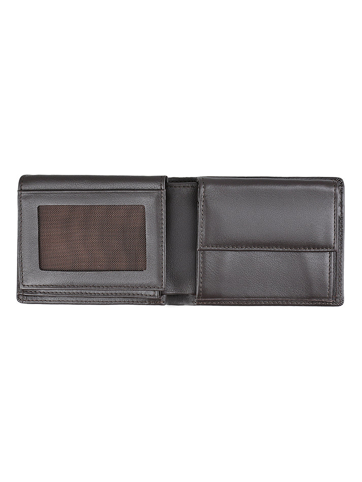 This wallet keeps you organized in style. The-window flap showcases your ID, while the metallic logo adds a touch of class.
