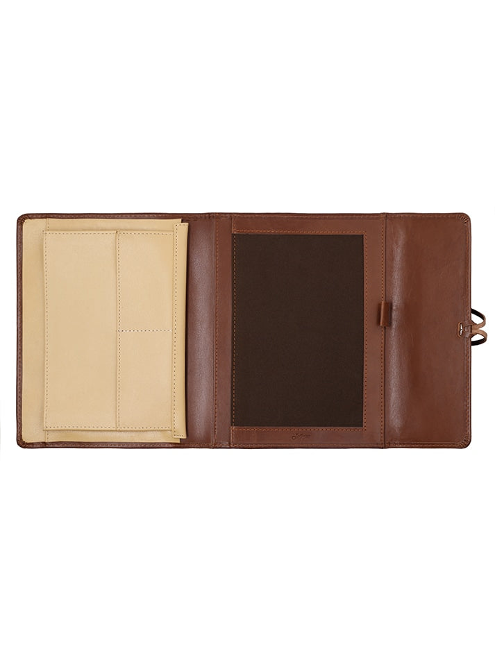 Designed for professionals on the go, this leather portfolio effortlessly combines style and function. Its spacious interior accommodates a tablet, making it perfect for organizing essentials.