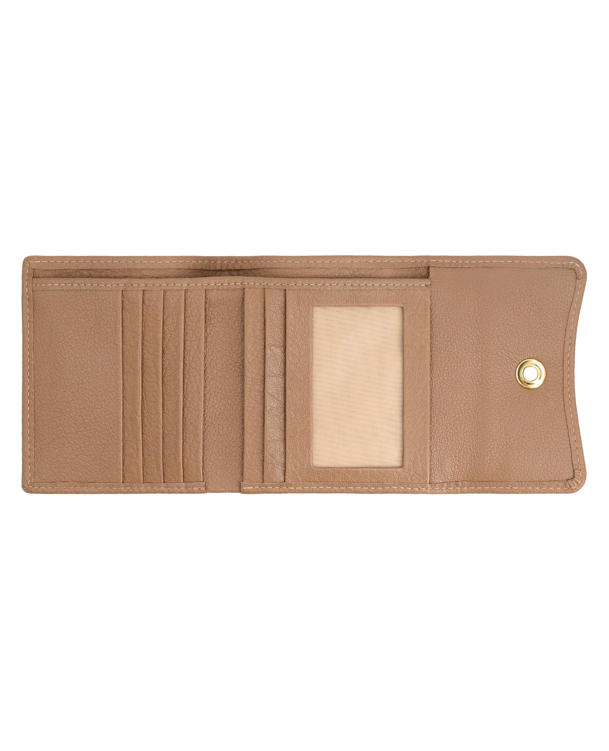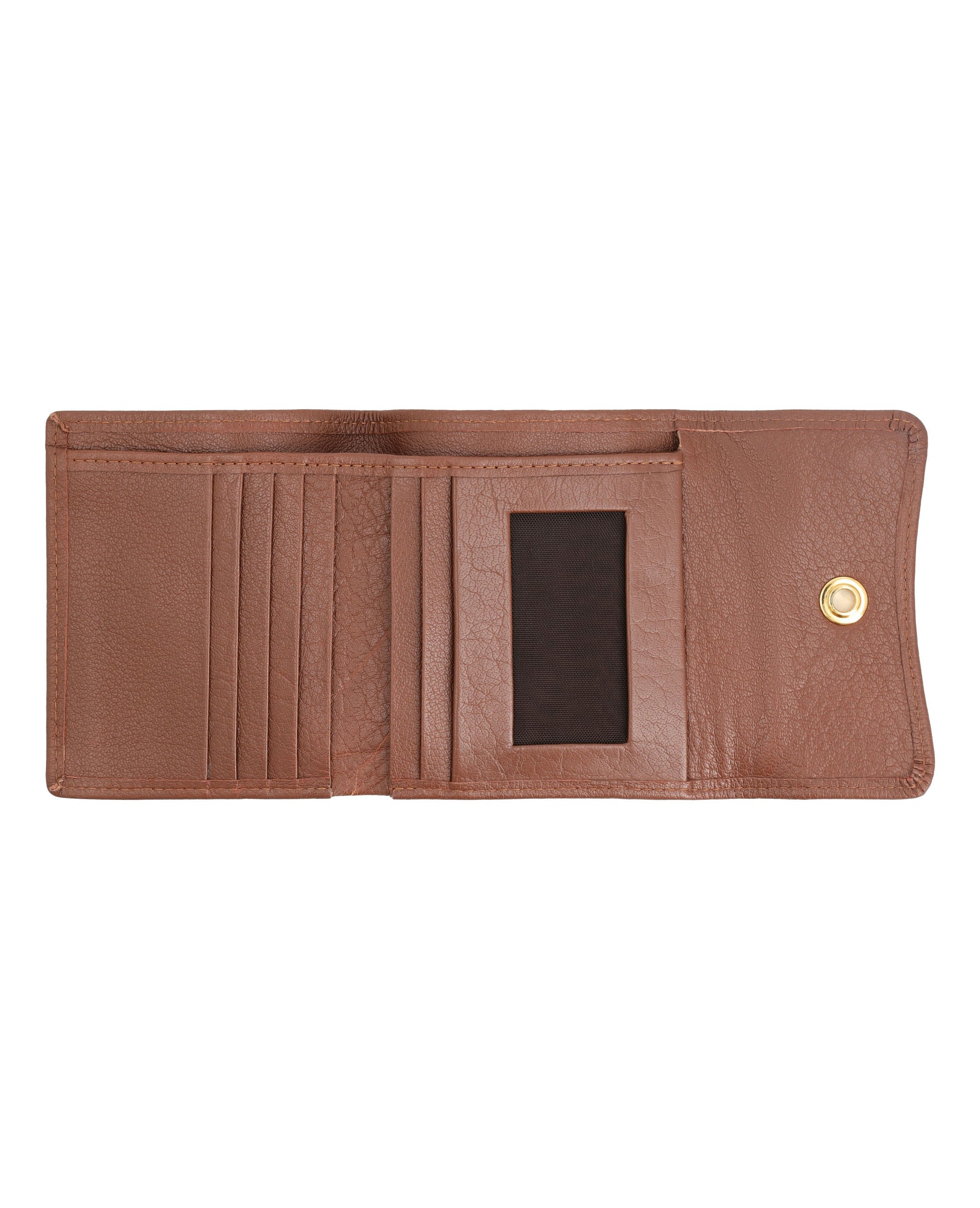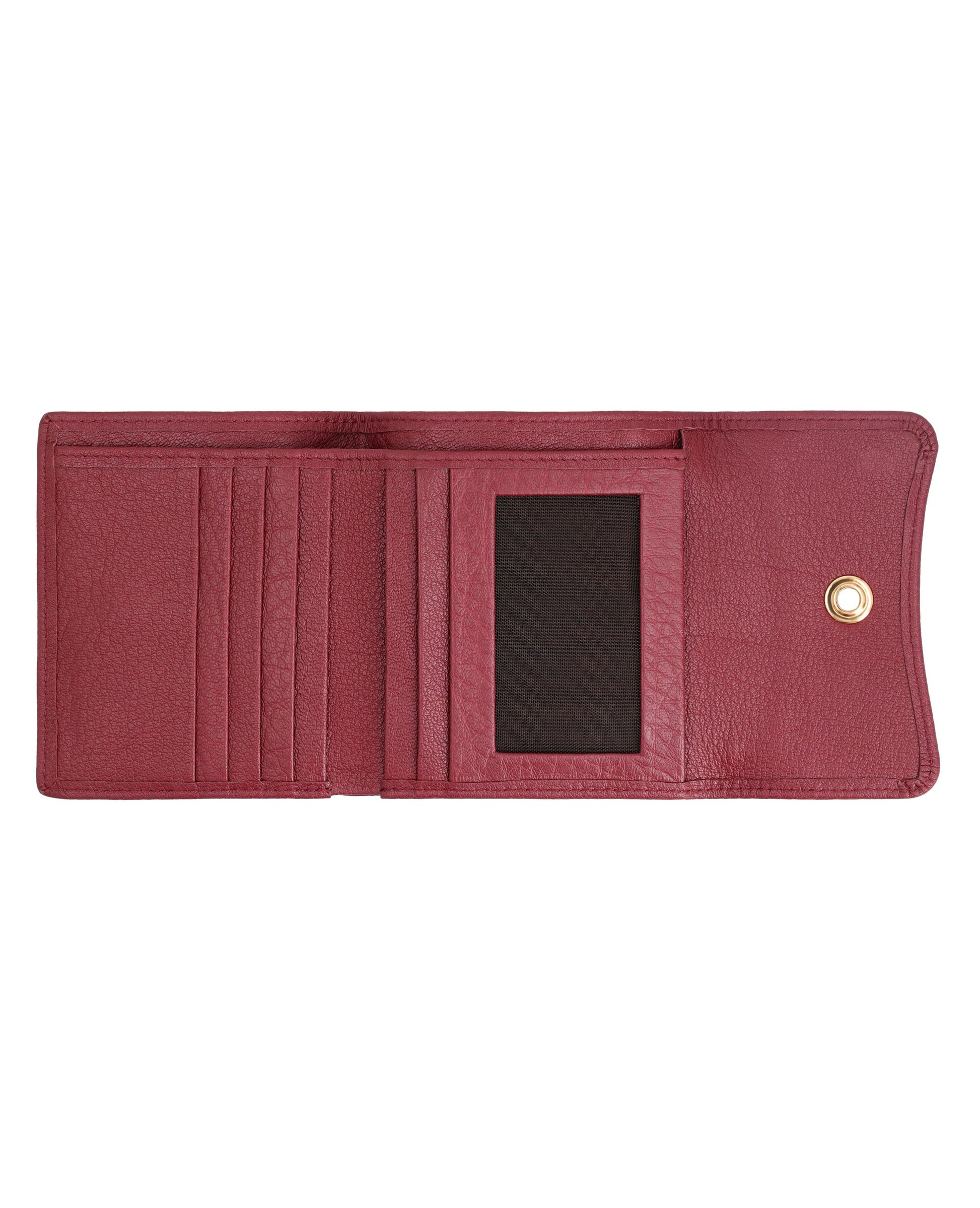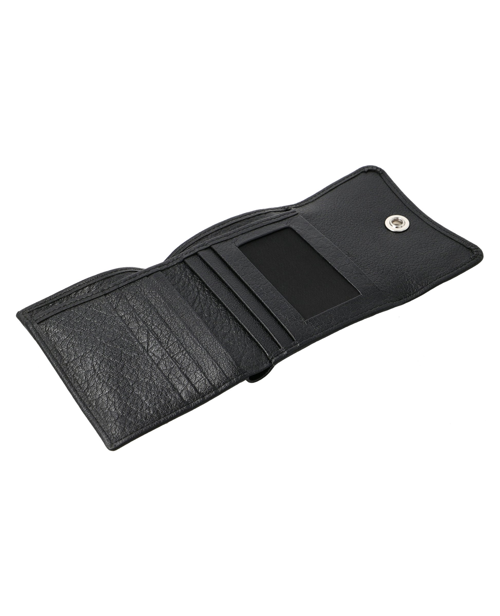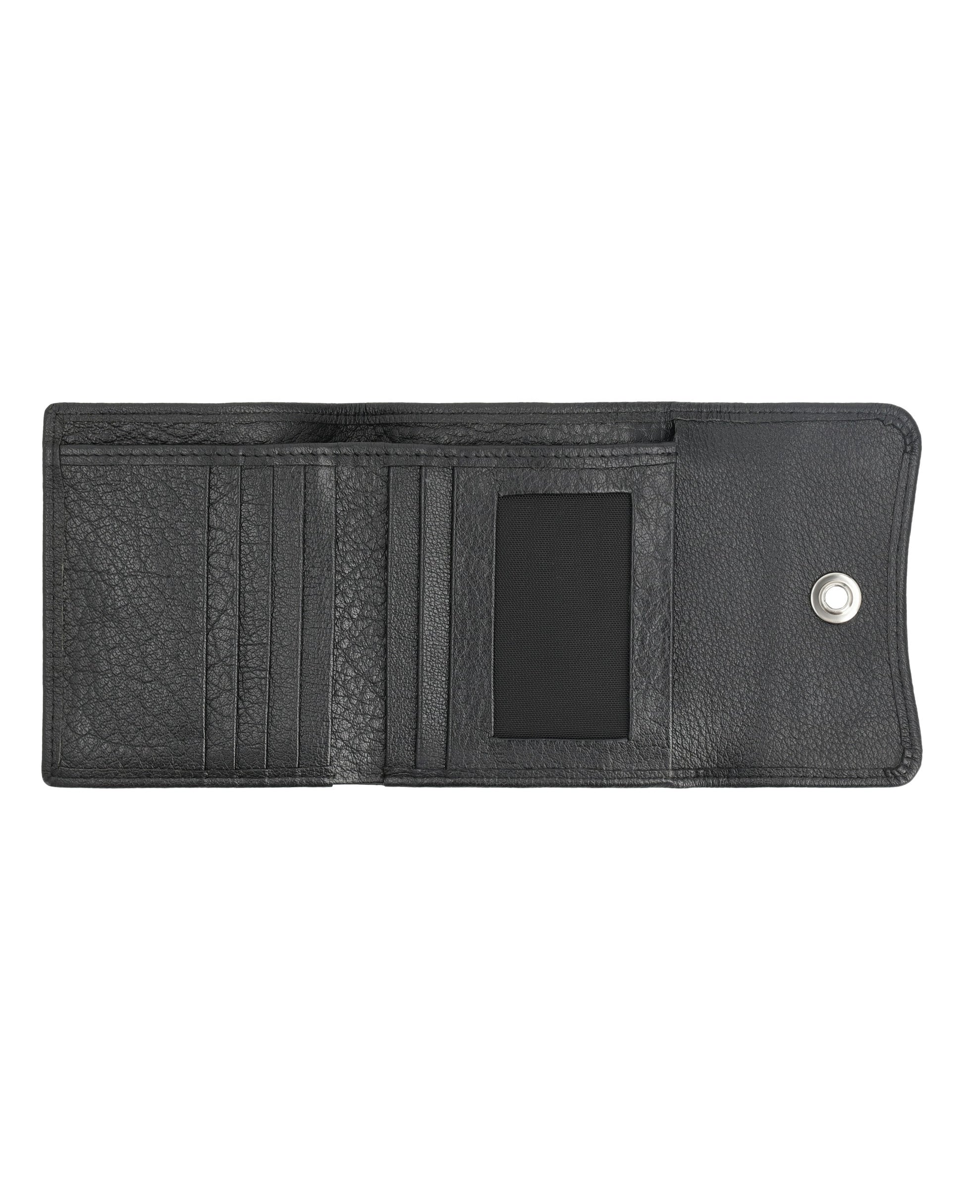 Sleek, small leather wallet with snap closure offers easy access to essentials and keeps cards organized.FEATURES:
