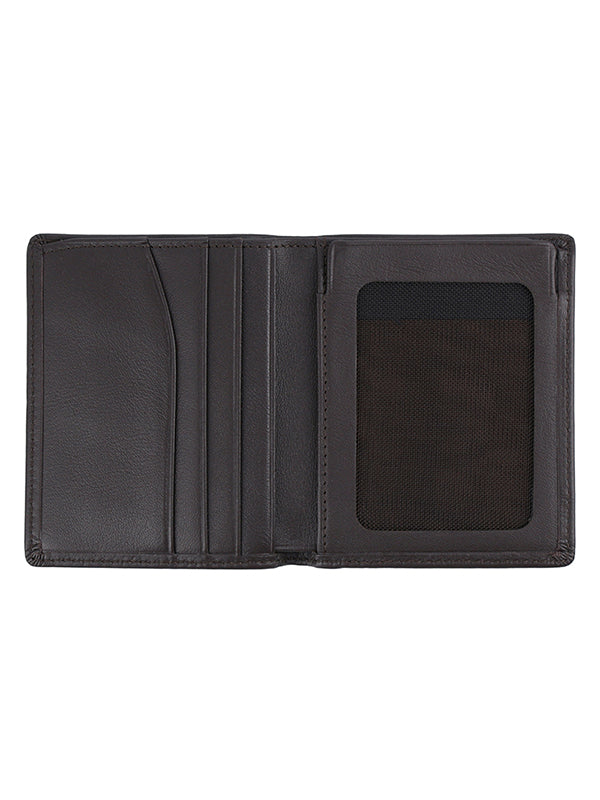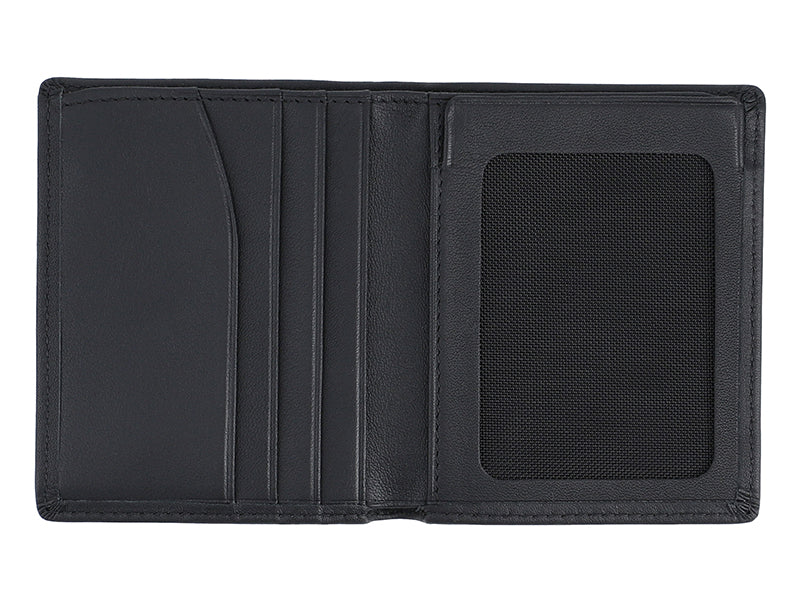This wallet keeps you organized in style. The-window flap showcases your ID, while the metallic logo adds a touch of class.
