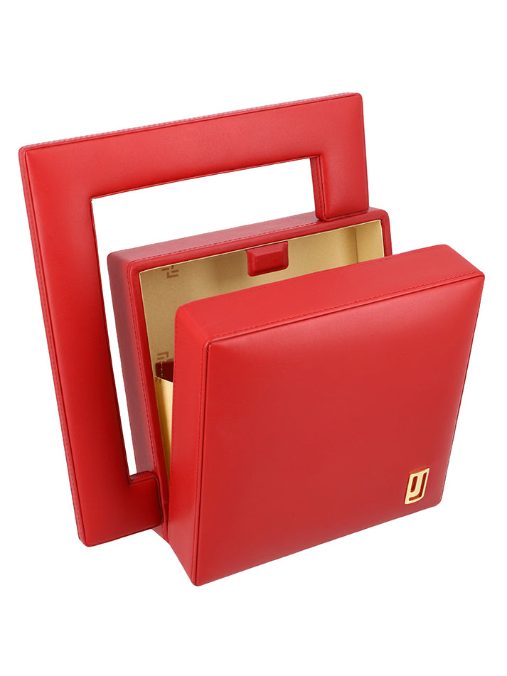 A bold and artistic statement piece, this frame-shaped bag is perfect for special occasions.FEATURES: