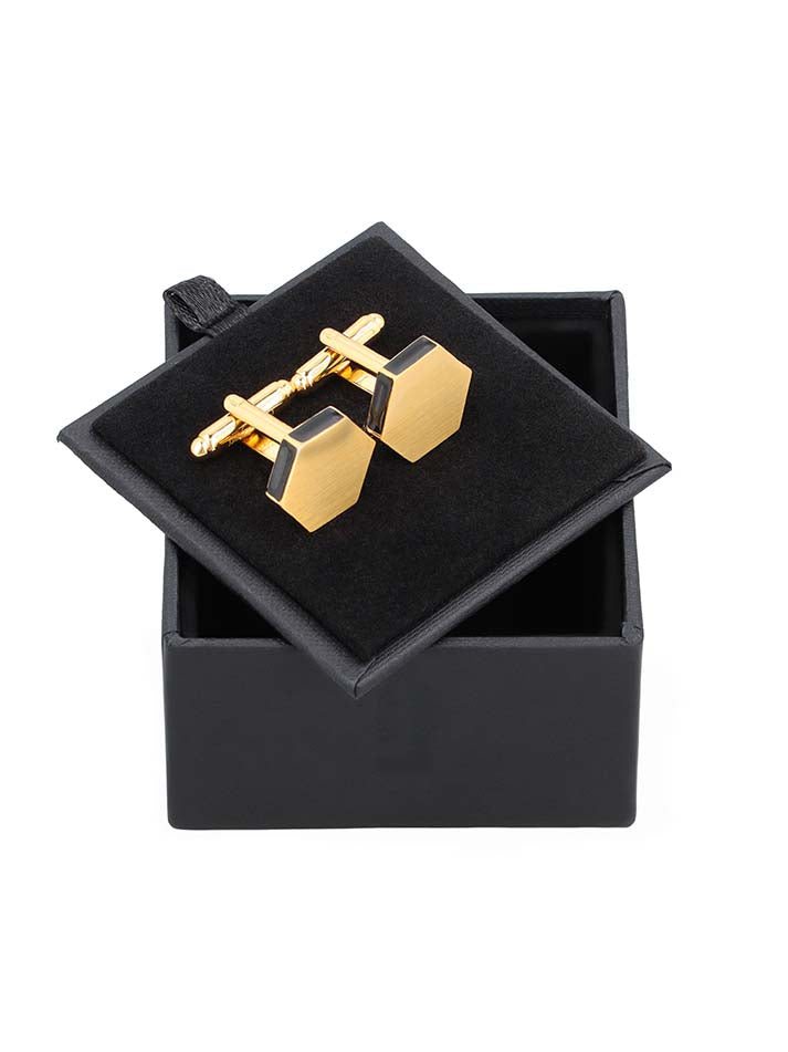 These hexagon-shaped cufflinks, available in gold or silver finishes, will elevate your attire by adding a distinctive touch to your outfit